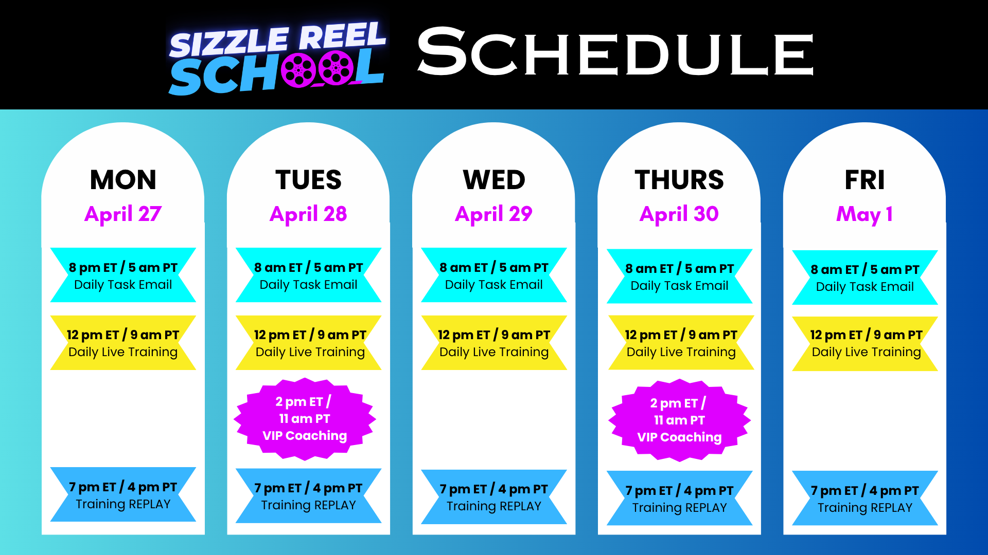 🔥 Hands-On Implementation Week: Script, film, and finish your Sizzle Reel during the challenge. No procrastinating, no half-finished projects. (By Day 5, it’s DONE.)